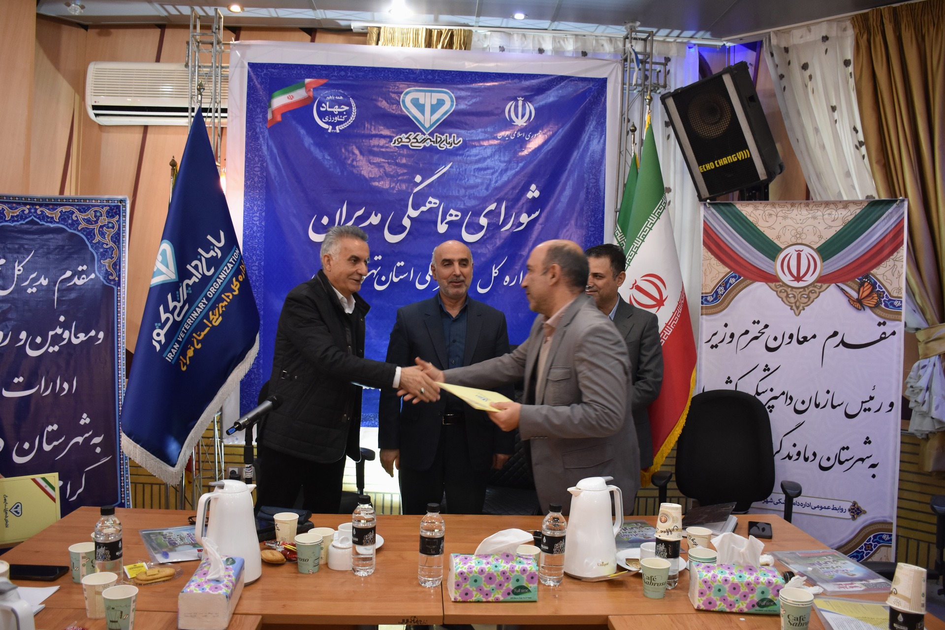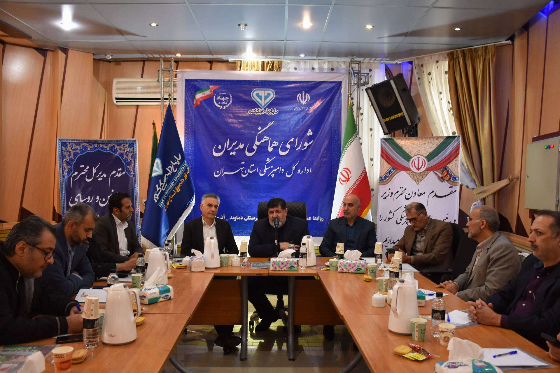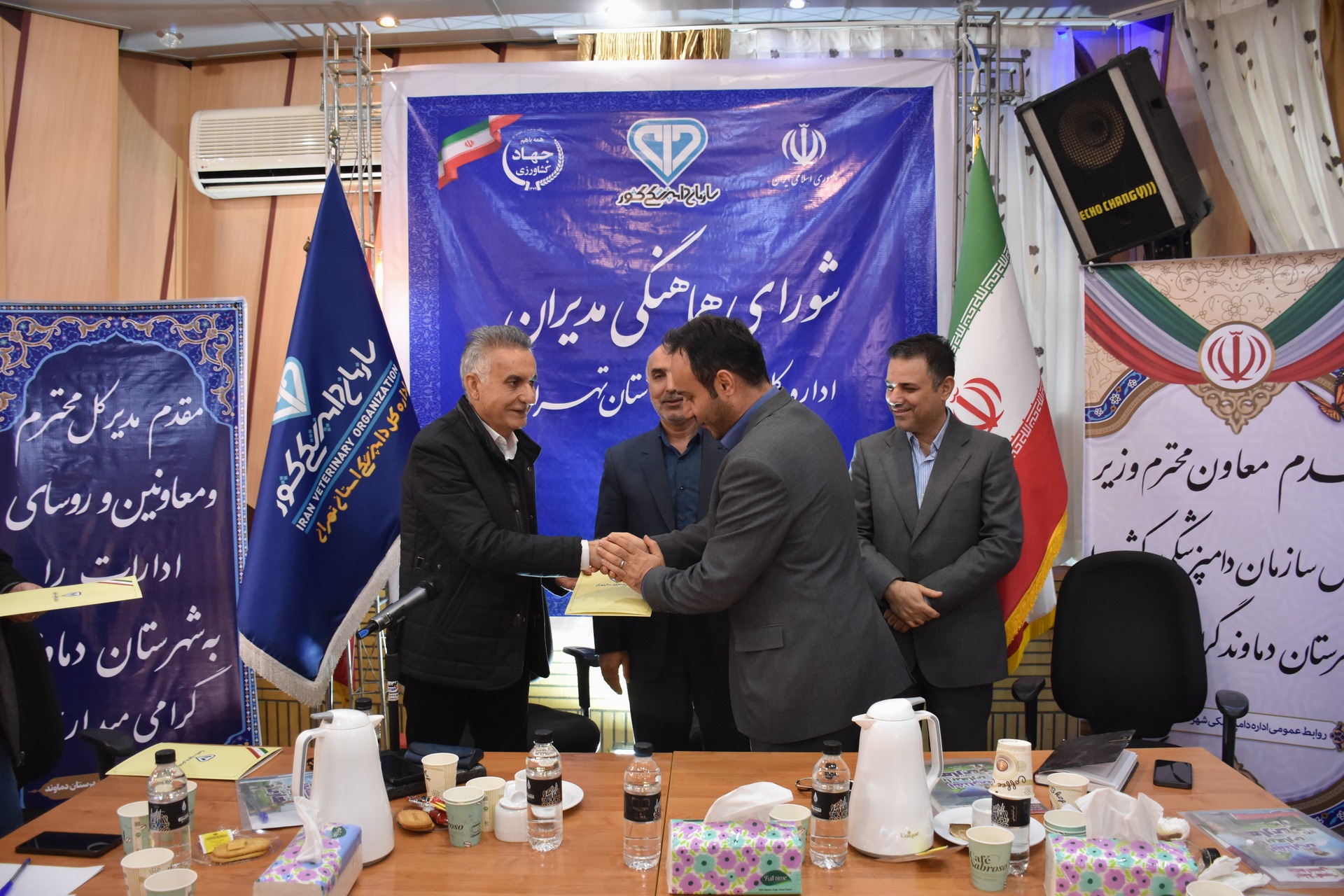 جلسه شورای مدیران دامپزشکی استان تهران به میزبانی شهرستان دماوند و با حضور دکتر رضوانی مدیر کل حوزه ریاست سازمان دامپزشکی کشور، دکتر شریعتی مدیرکل دامپزشکی استان تهران، دکتر حیدری آزاد فرماندار شهرستان دماوند، مهندس خدابخش مدیریت جهاد شهرستان، معاونین و روسای ادارات ستادی و ادارات شهرستان‌های استان تهران با محوریت بیماری تب برفکی برگزار شد.